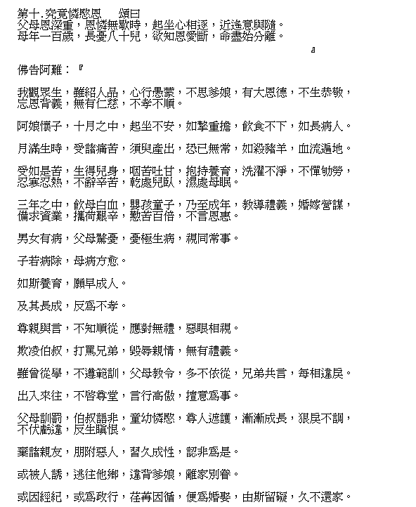 The Parents' Immense Grace Being Difficult to Compensate Sutra